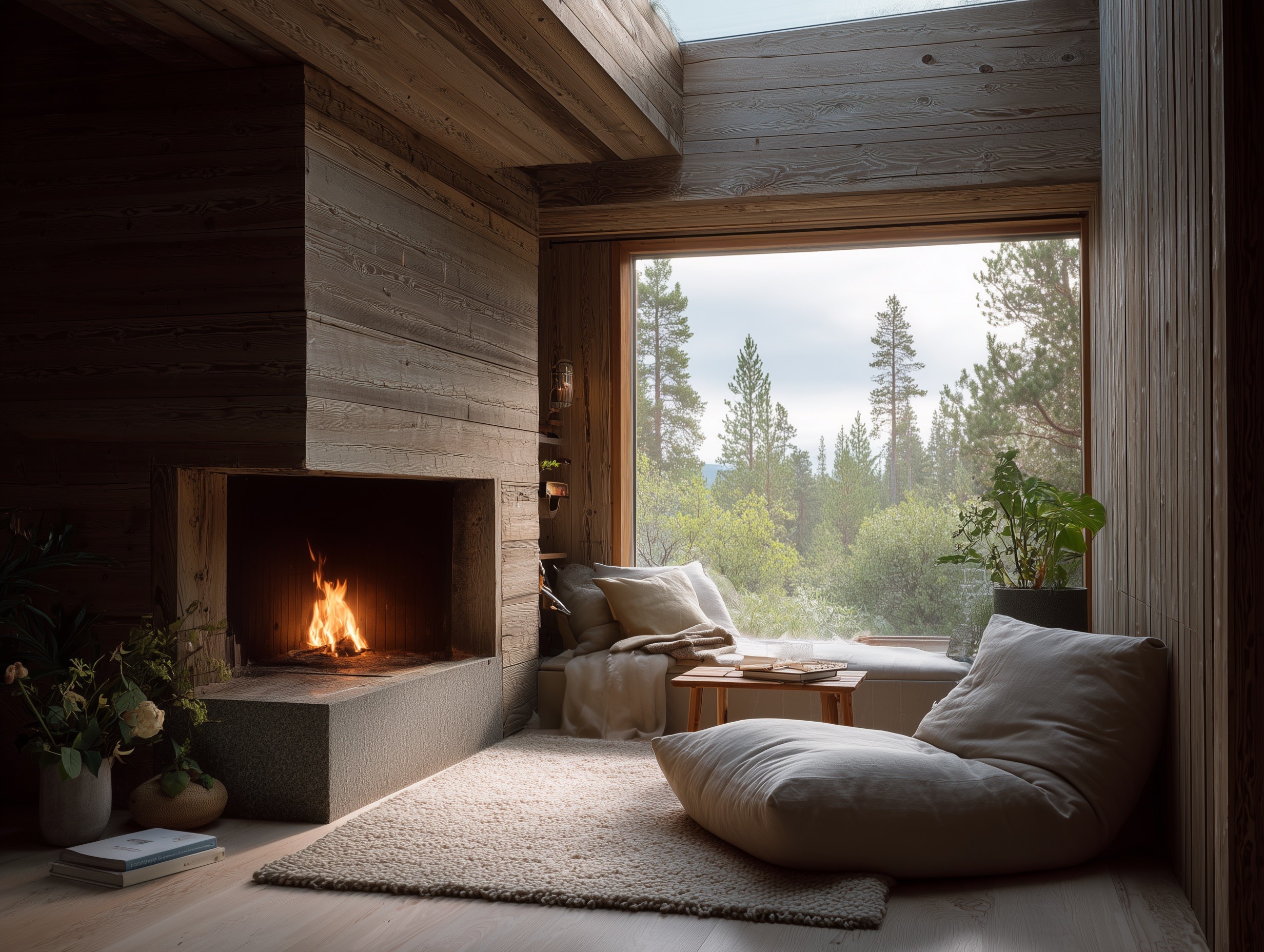 Nordara was created as a sanctuary for couples seeking privacy and reconnection. Surrounded by untouched woodland, the cabin blends modern minimal design with natural textures and warm materials.